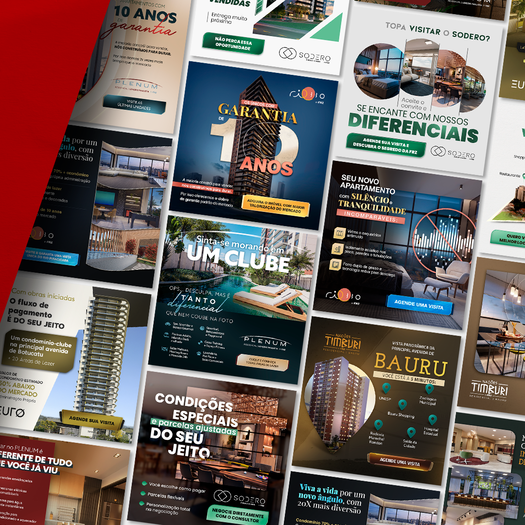 📊 Criativos para tráfego pago, com foco em carrosséis estratégicos complementados por cards únicos e vídeos motion